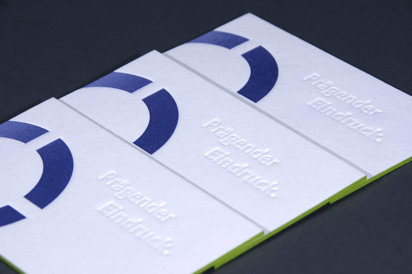 Sowohl die Hoch- als auch die Tiefprägung sorgt für einen starken Auftritt. Logos und Schriften unter anderem auf Visitenkarten oder Klappkarten kommen so ganz besonders zur Geltung und zeigen Wirkung beim Empfänger. Bei der Hochprägung wird Logo oder Schrift hervorgehoben, bei der Tiefenprägung passiert das Gegenteil und die Verformung erfolgt vertieft zur vorliegenden Materialoberfläche. Beide Veredelungsformen sorgen für ein haptisches und auch optisches Erlebnis, ein sehr hochwertiges Erscheinungsbild und sind auf diversen Papieren prägbar. Damit die Prägung stark genug herauskommt, sollte eine Papiergrammatur von maximal 350g/qm nicht überschritten werden.