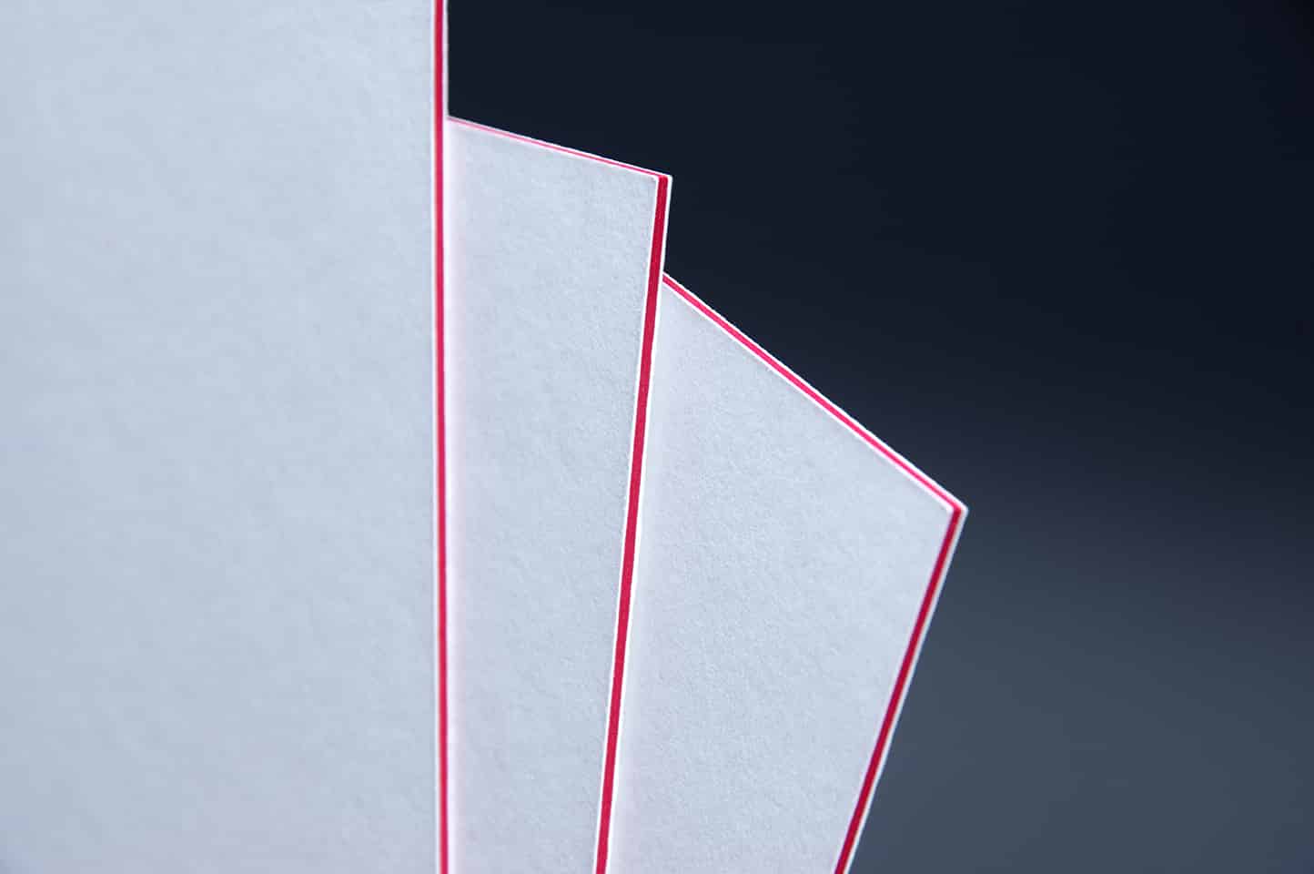 Eine ganz besondere Form der Veredelung bieten unsere Multiloft-Karten mit Farbkern. Sie sind durch ihre Sandwich-Optik ein echter Hingucker. Sie werden aus hochwertigem Multiloft-Karton gefertigt, der aus drei Kartonschichten besteht. Die äußeren Kartonschichten sind weiß und ungestrichen, die mittlere Kartonschicht ist farbig. Dieser Kartonkern ist in verschiedenen Farben möglich. Die Multiloft-Karte ist nicht nur auffallend hübsch, sondern auch außerordentlich griffig. Visitenkarten erhalten durch diese Veredelungsart ein besonders Flair, aber auch Einladungen und anderen Arten von Klappkarten.